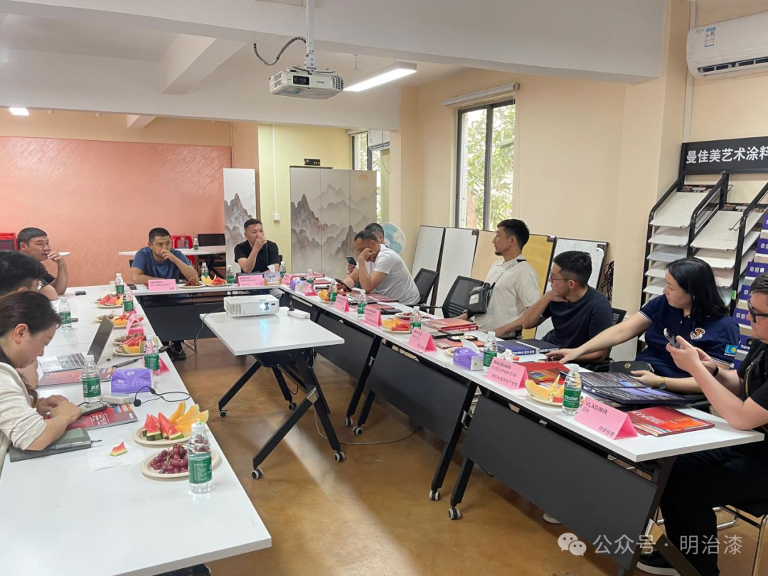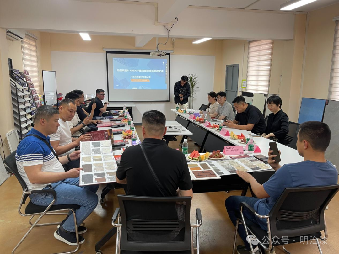 参观结束后,昊特建材张总经理、技术应用廖主管与哈萨克斯坦BI GROUP集团一行进行了更深一步的会谈,对我司的生产工艺、产品研发、产品体系以及企业的发展战略有了更深一步的了解。哈萨克斯坦BI GROUP集团一行对此次参访表示非常满意,对我司在建材涂料领域的专业实力和发展成果给予肯定的评价,更希望日后与我司能有更深一步的合作。