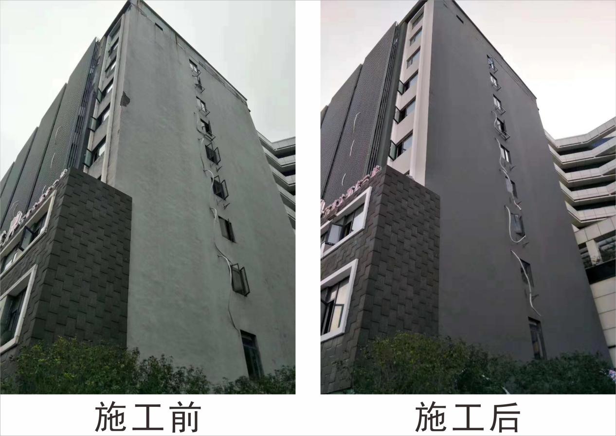 项目名称:金莎商务酒店--翻新项目项目地址:广东省中山市康华路43号施工区域:外墙墙体翻新所用产品:明治护外宝抗碱底漆、...