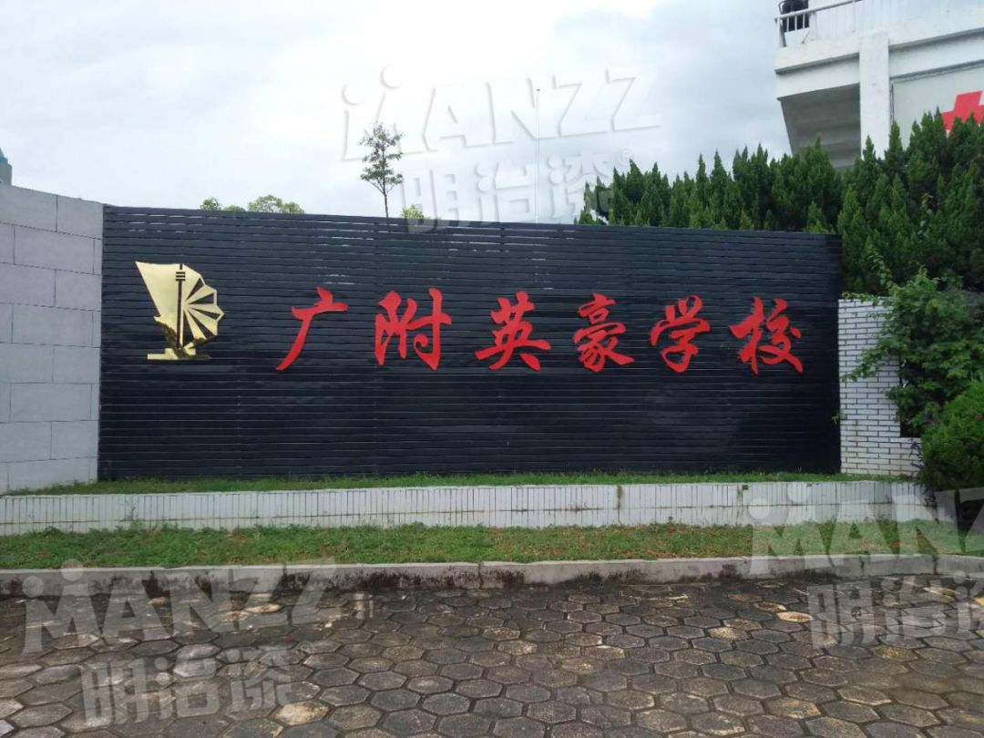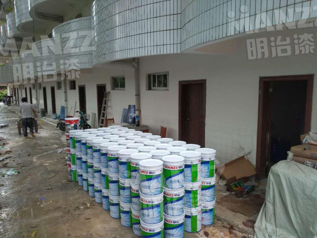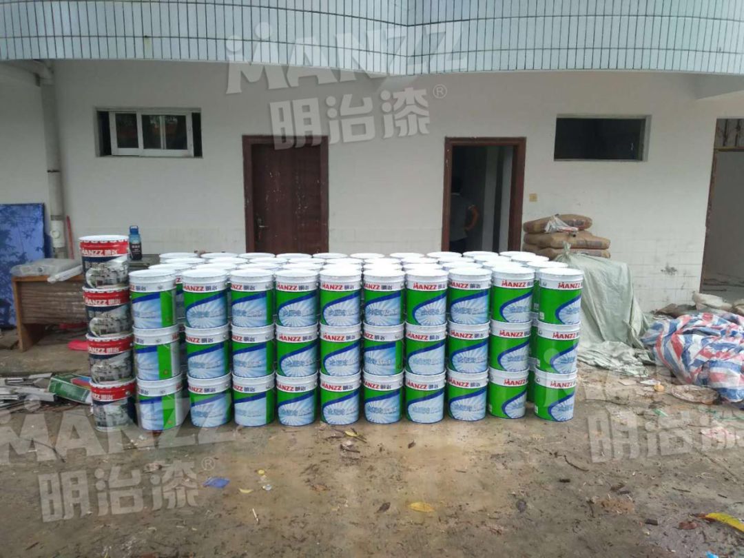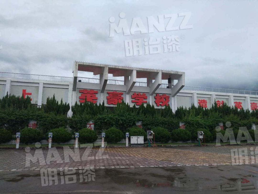 该涂装工程使用了明治全哑光墙面漆和明治快施宝外墙漆来进行广附英豪学校涂装施工。