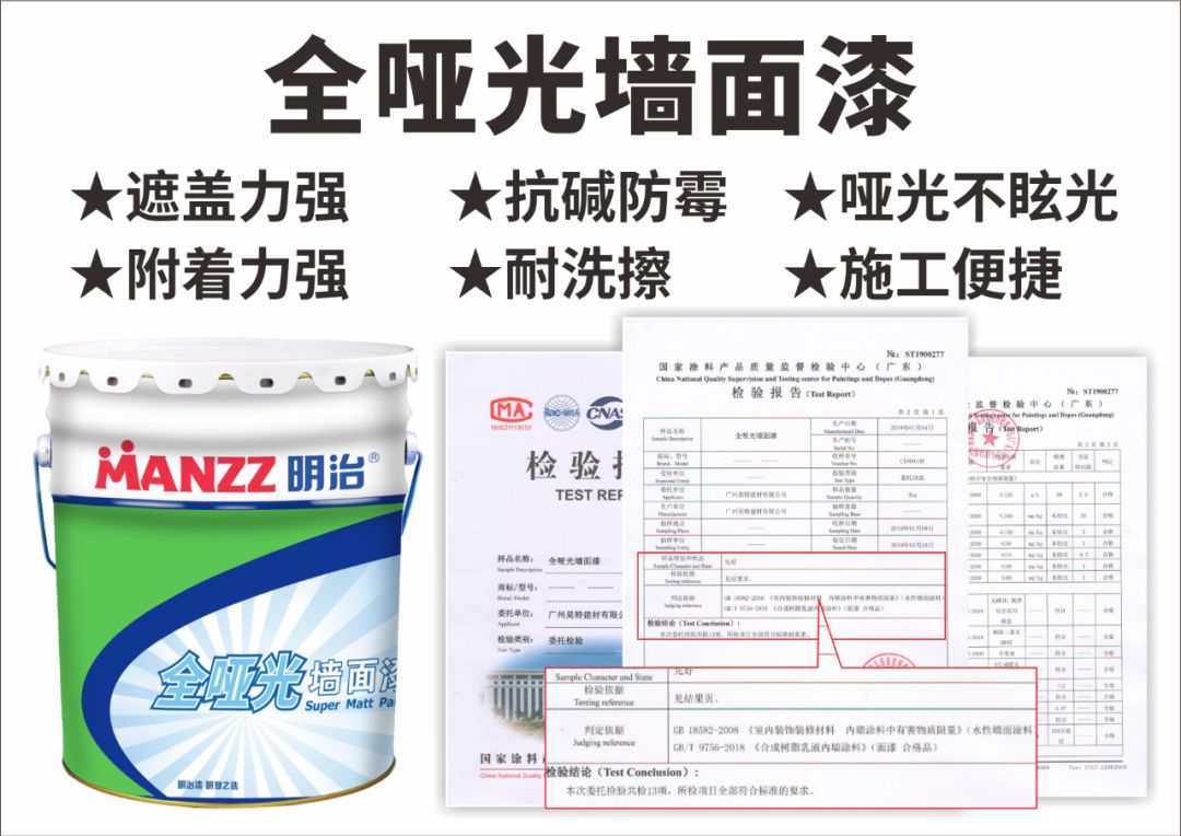 明治全哑光墙面漆是专门为内墙墙面精制而成的高品质哑光涂料,本产品具有良好的防霉抗碱功能,并且有很好的遮盖力强、附着力强等性能,能有效的覆盖底材,涂刷面积大,施工便捷,性价比高,配合哑光不眩光,不刺眼,带给你完美的墙面效果。特别适合酒店、住宅、办公楼、商场等室内装饰。