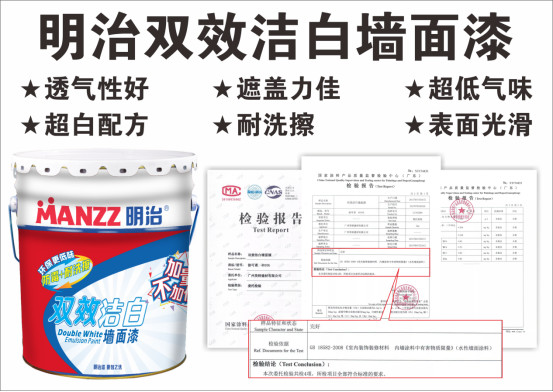 明治双效洁白墙面漆采用环保、优质的水性原材料和先进的生产工艺生产而成。该产品采用洁白技术使漆膜洁白靓丽,光滑平整,遮盖力...