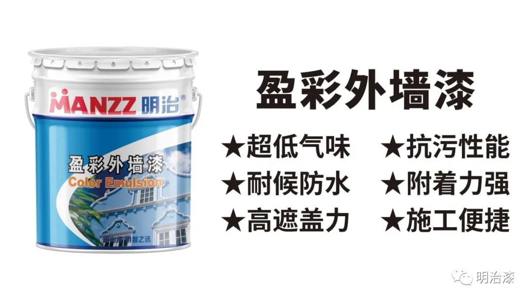明治盈彩外墙漆是专为混凝土及抹灰表面特别开发的一款外墙涂料,选用优质的原料及特殊的配方,本产品广泛用于新旧墙面的涂装施工,具有优异的耐候性、保色性、耐沾污性,还有优异的保护及装饰功能,能够有效延长墙面的使用年限,且有丰富的色彩选择,能够让建筑物呈现不同的风格。